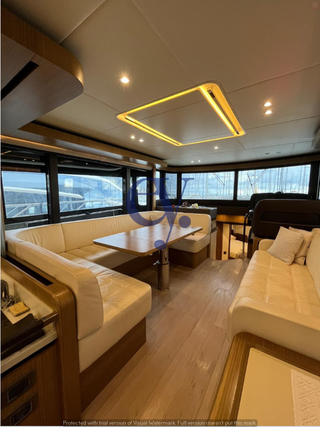 Ambienti raffinati, luminosi e funzionali. Cabina armatoriale a tutto baglio a centro barca con bagno ensuite e box doccia separato. N°1 Cabina ospiti doppia letti in piano Cabina VIP a prua matrimoniale. Bagno ospiti completo e box doccia. Cabina equipaggio con letto e bagno separato. Dinette elegante e panoramica. La cucina, completamente attrezzata e ben integrata negli spazi, garantisce comfort e praticità a bordo ed è completa di forno, frigorifero esterno e interno, piastra in vetroceramica, lavasciuga,lavastoviglie,ICE Maker e Ghiacciaia
