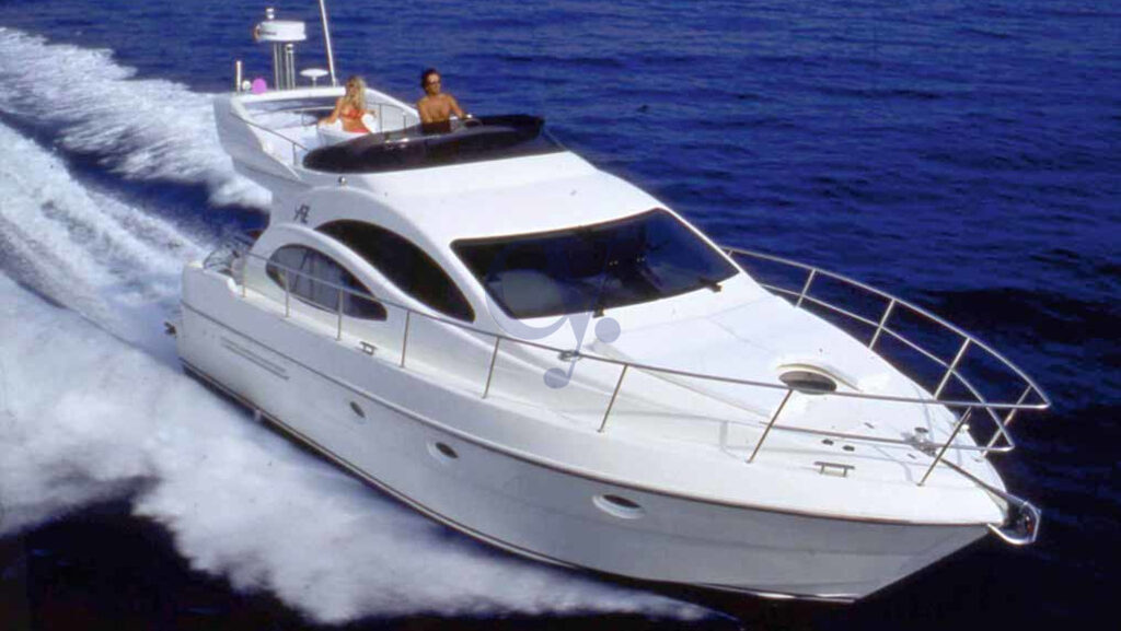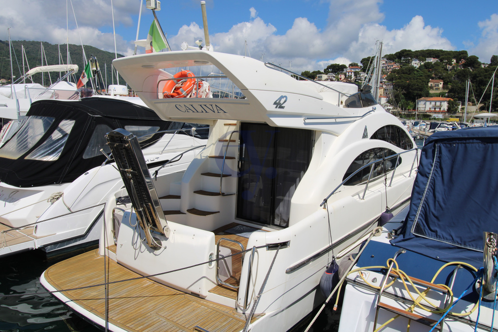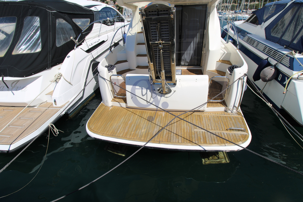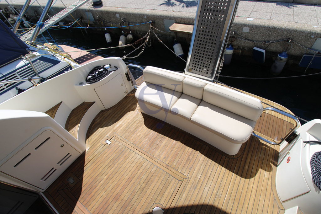 Equipaggiamento Interno ed Esterno:Ancora – Caricabatterie – Doccia esterna – Passerella – Piattaforma (Teak) – Pompa di sentina automatica – Pozzetto Teak – Salpa Ancore Elettrico – Aria condizionata caldo freddo – Impianto acque nere – Prese interne 12v – Prese interne 220v – 2 WC marino elettrico – Altoparlanti – Stereo – TV – Cuscineria fly – Cuscineria Pozzetto – Telo copriconsolle – Boiler – Allarme fumo/gas – Allarme motore, – Allarme sentina – Autoclave – Autogonfiabile – Batterie – Caricabatterie – Contametri catena – Luci di cortesia – Rollbar – Scaletta da bagno – Tavolo pozzetto.