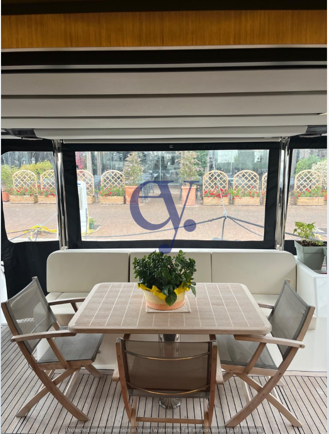 Elegant flybridge with a refined design, perfectly combining style, innovation, and comfort. It offers spacious and bright areas designed for enjoying the sea in total relax.