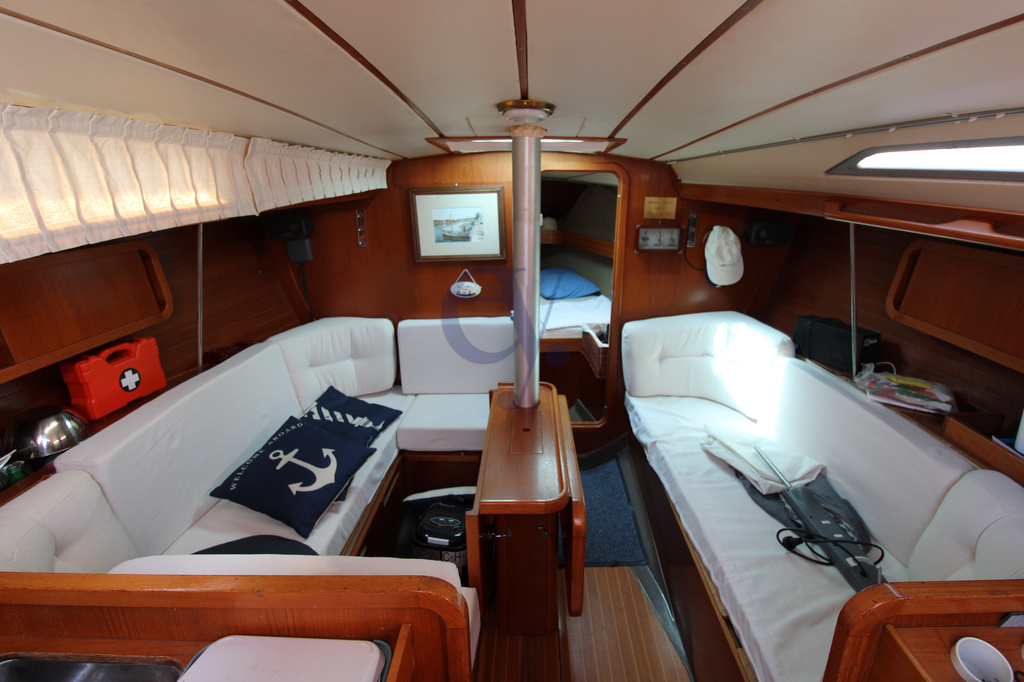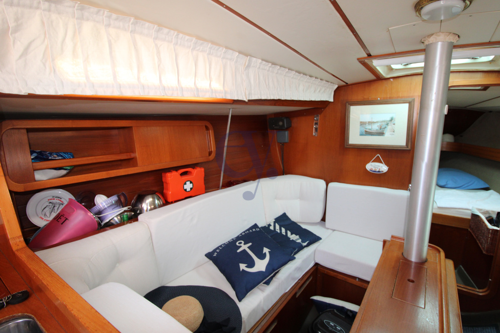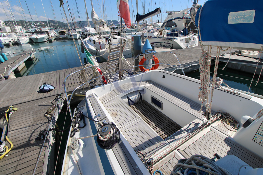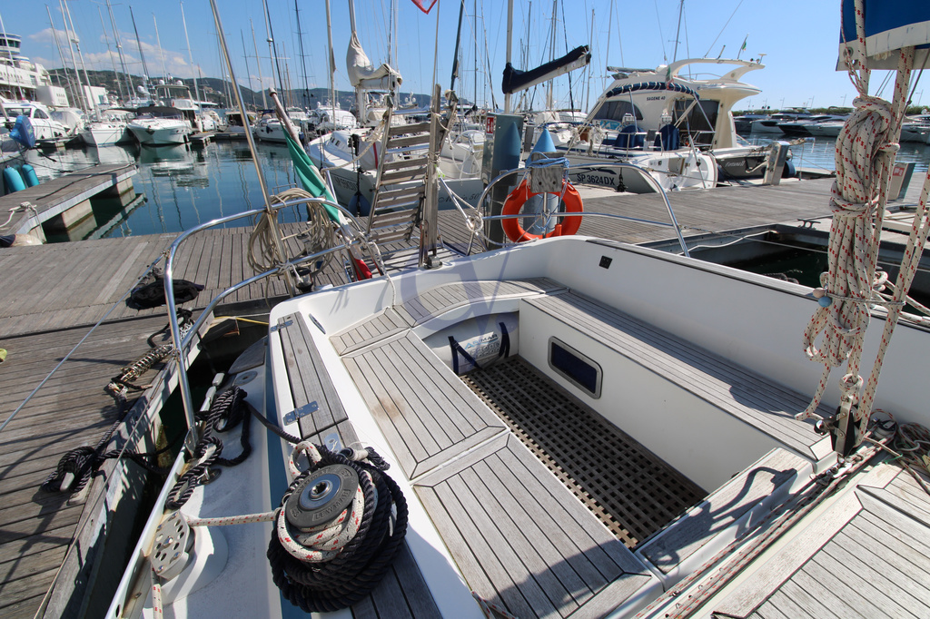 Traditional mainsail – Furling genoa – Electric windlass – 5 winches – Teak interior – Lazy bag – Manual gangway – Stern shower H/C – New teak in cockpit – Swimming ladder – Windlass – 220v shore power – 12v internal sockets – 220v internal sockets – Battery charger – 2 x 80 Ah batteries – 2-burner gas stove – Cockpit fridge – Traditional oven – Hot water boiler – Autoclave.